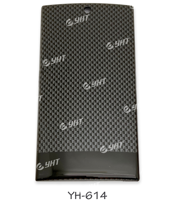 YH-614 / Black Tower Carbon Fiber water transfer printing film featuring a sleek woven pattern and high-gloss depth,